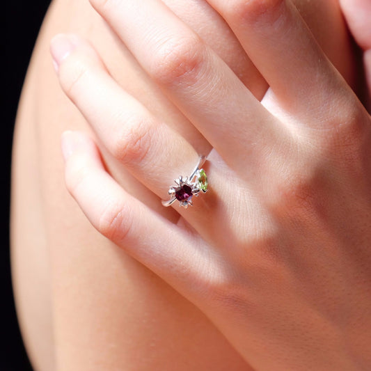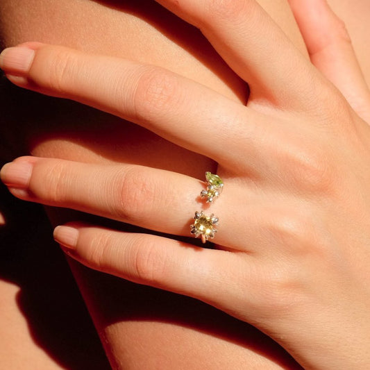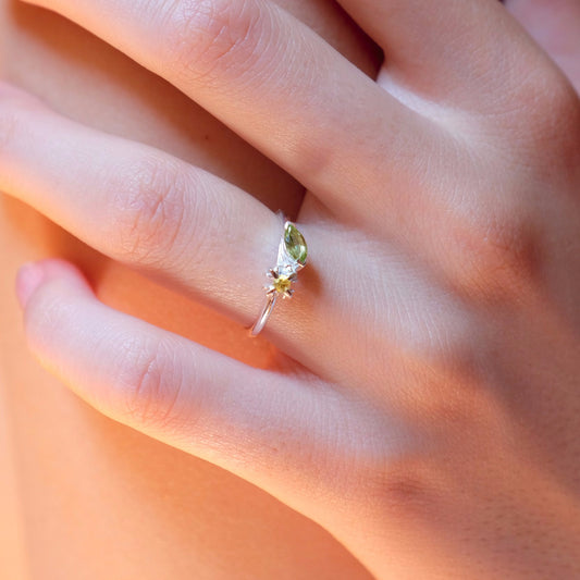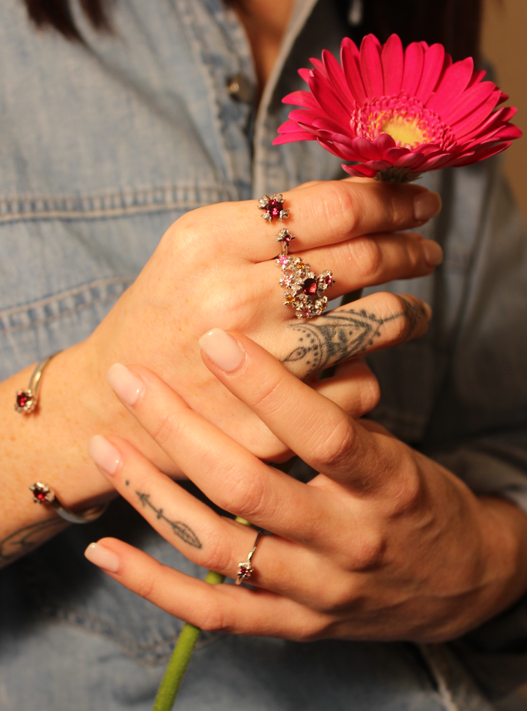 La collezione Flower di IKADŌ è costituita da gioielli realizzati artigianalmente, tutte le pietre in essi incastonate sono naturali e ne garantiamo l'eticità e la provenienza.